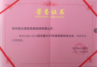 昆侖重工榮膺昆山市周市鎮(zhèn)“2016年年度創(chuàng)新創(chuàng)業(yè)企業(yè)”稱號(hào)